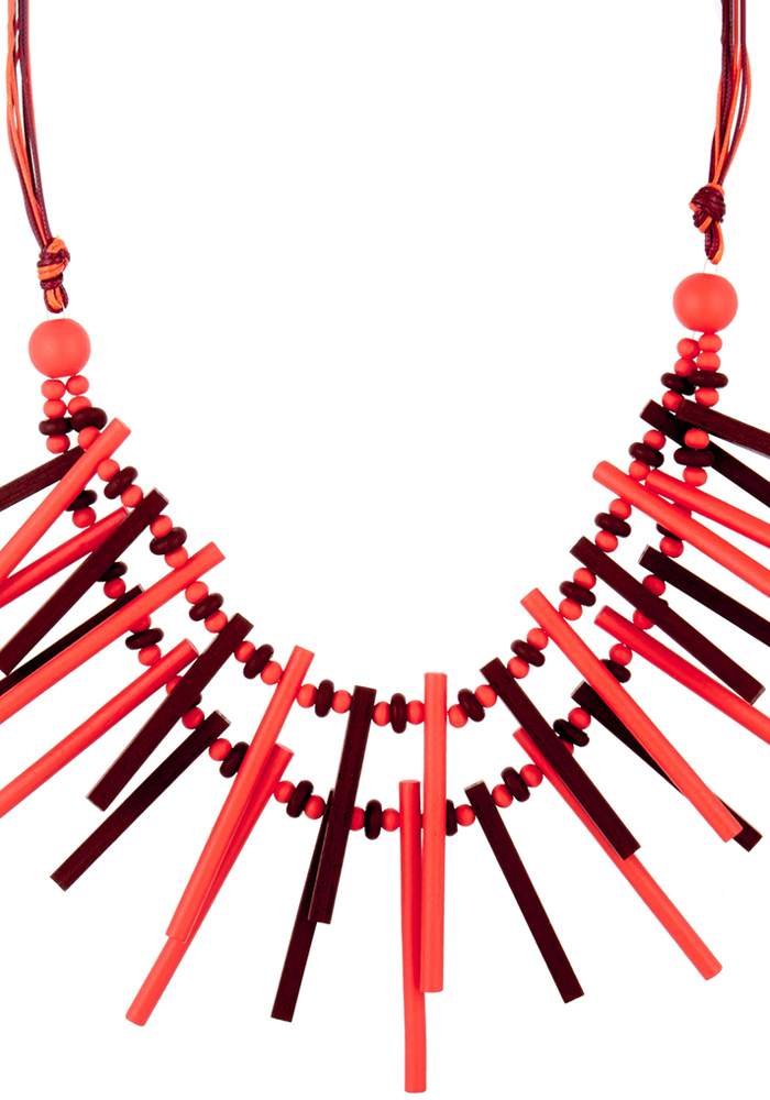 Κολιέ χειροποίητο από ξύλο με ακτινωτά στοιχεία Υλικό: Ξύλο Χρώμα: Κοραλί / Καφέ Μήκος: 56εκ.