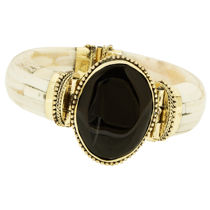 Βοhemian luxe βραχιόλι χειροποίητο ανοιγόμενο από κόκκαλο διακοσμημένο με πέτρα σε χρώμα μαύρο Υλικό: Φυσικό κόκκαλο horn/ Μέταλλο