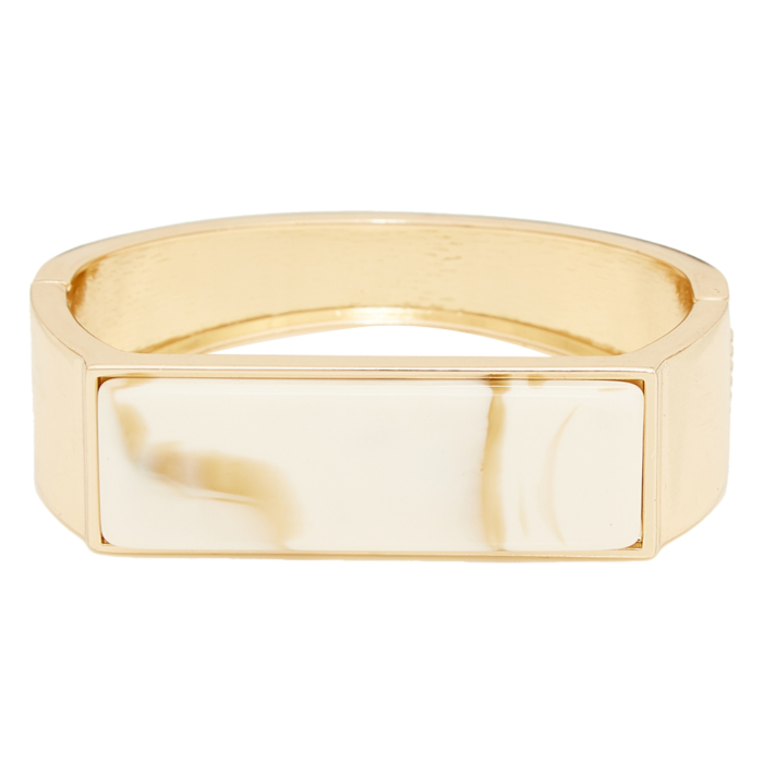 Bραχιόλι χειροπέδα ανοιγόμενη με λευκή ορθογώνια πέτρα Υλικό: Mέταλλο Χρώμα: Xρυσό
