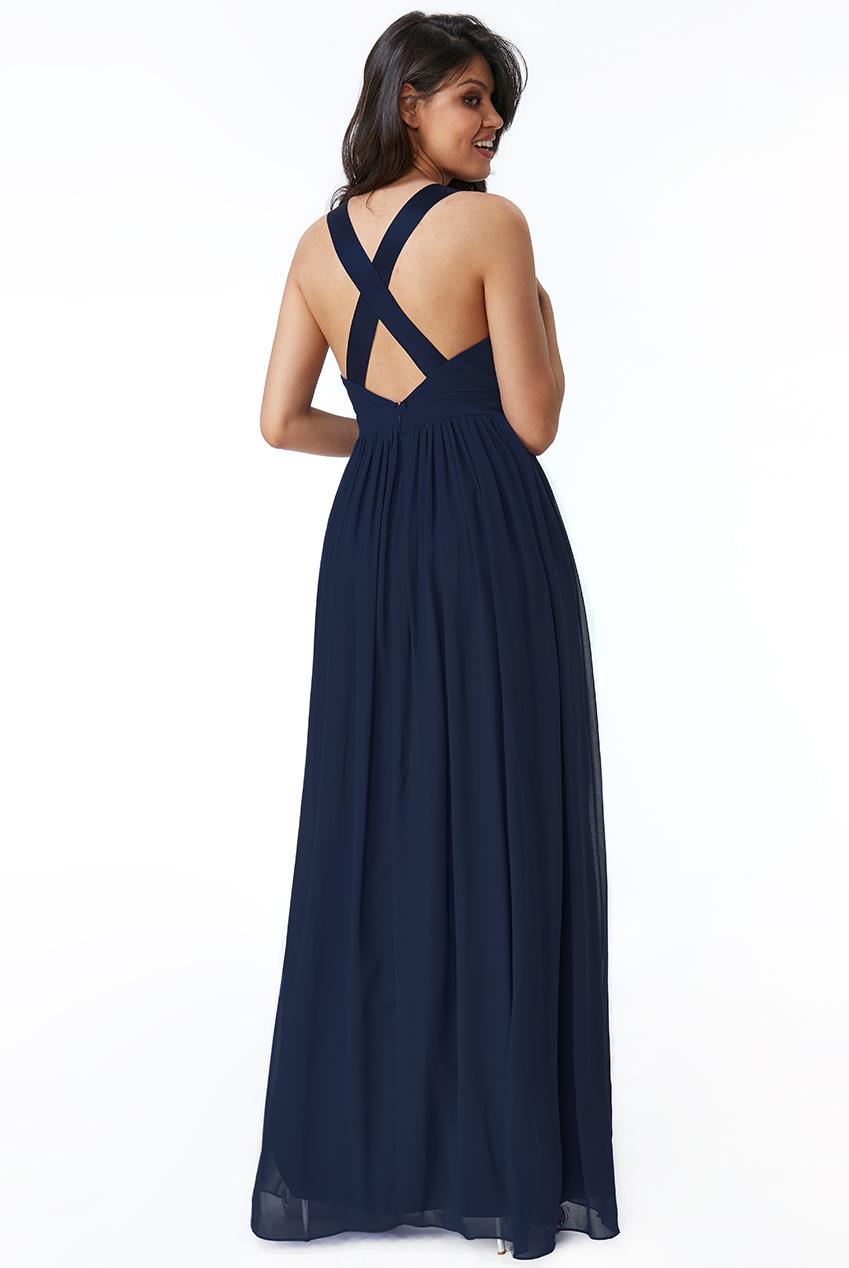Αέρινο, princesslike maxi φόρεμα από μαλακό chiffon. Είναι σχεδιασμένο σε κόψιμο empire που τονίζεται με μεγάλες, high quality diamante πέτρες. Το ντεκολτέ είναι V με πιέτες που ανοίγει σε άνετη flare γραμμή, ενώ η πλάτη είναι εντυπωσιακή με χιαστί φάσες. Ιδανικό occasion φόρεμα για romantic style!