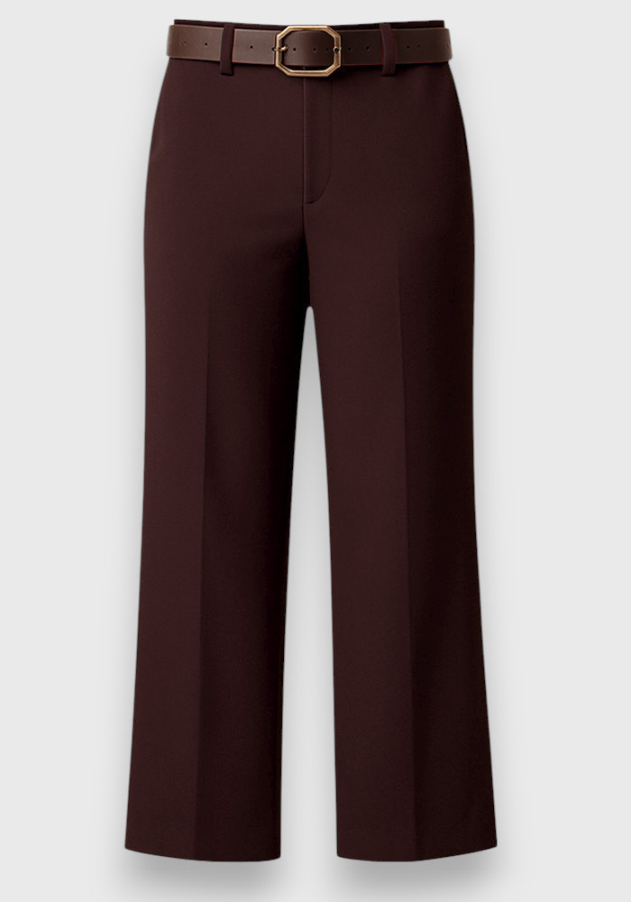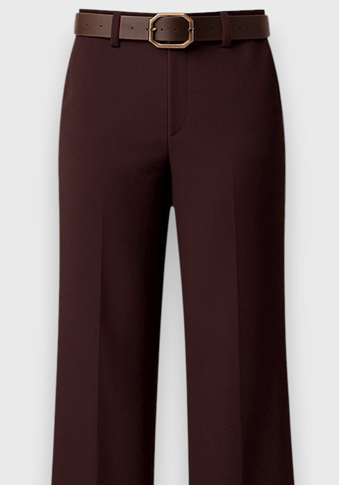 Καφέ παντελόνα Business σε ίσια γραμμή με διακριτική ζώνη και τετράγωνη αγκράφα. Έχει λοξές τσέπες στο πλάι και φιλέτο τσέπη στο πίσω μέρος. Στη μέση διαθέτει λάστιχο στο πίσω μέρος, για καλύτερη και άνετη εφαρμογή. Ένα κομμάτι που συνδυάζει κομψότητα και πρακτικότητα, ιδανικό για office look αλλά και πιο βραδινές εμφανίσεις. Το minimal design του το καθιστά ευέλικτο για πολλούς συνδυασμούς.