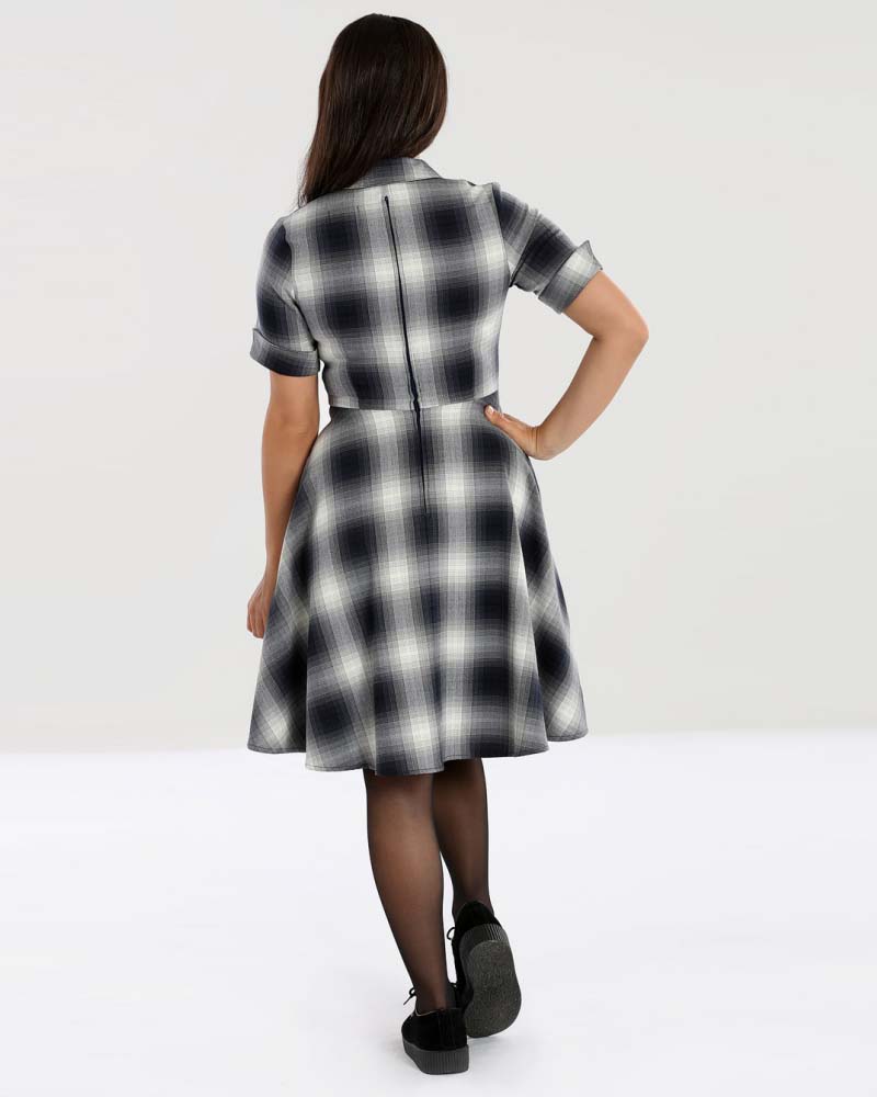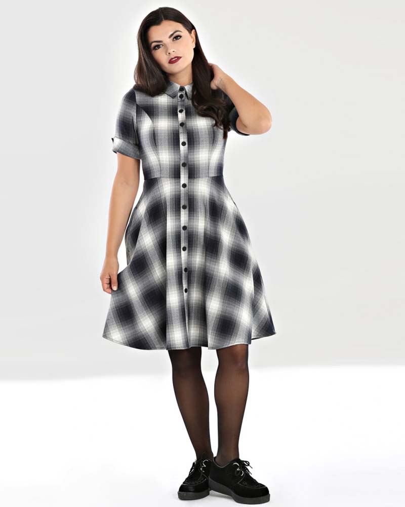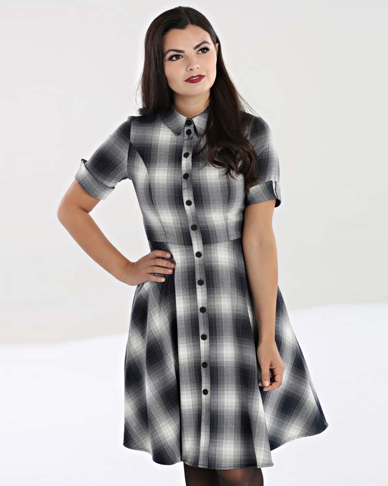Casual, alternative φόρεμα από μαλακό καρώ, viscose blend ύφασμα με ελαστικότητα σε pixel fading καρώ tartan. Είναι σχεδιασμένο σε κλασικό πατρόν shirt dress, με γιακαδάκι, μανίκια με μανσέτα, structured κορμό & flare γραμμή ως το γόνατο. Cool & comfy για καθημερινό retro style με άποψη!