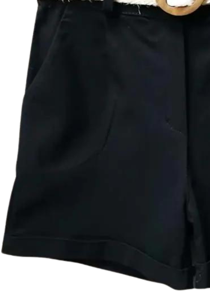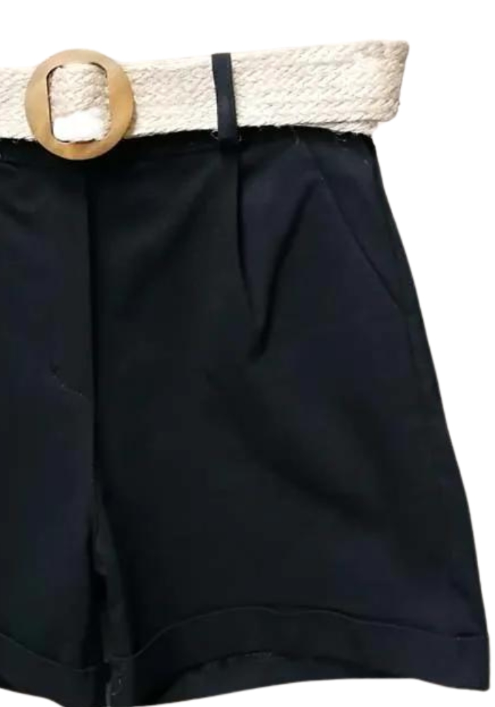 Καθημερινό ελαστικό cotton σορτς με τσέπες, ρεβέρ & matching ζώνη. Τέλειο με πουκάμισα!
