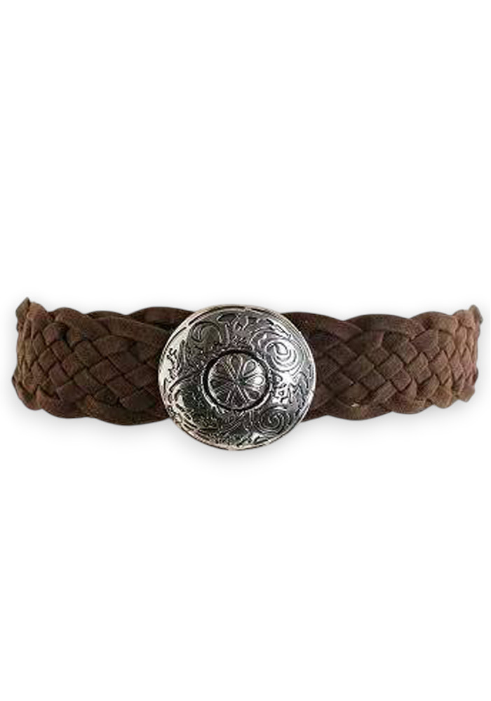 Η ζώνη Arkansas σε καφέ χρώμα με πλεκτή υφή και εντυπωσιακή ασημί αγκράφα συνδυάζει κομψότητα με boho χαρακτήρα. Ιδανική για να τονίσει τη μέση και να αναδείξει φορέματα, πουκάμισα ή παντελόνια, αποτελεί statement αξεσουάρ που χαρίζει στυλ σε κάθε εμφάνιση.