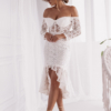 Romantic, bridal mini φόρεμα σε chic συνδυασμό υφασμάτων. Το επάνω τμήμα είναι από fine ελαστική δαντέλα με κολακευτικό V εμπρός/πίσω και μανικάκι cup. Στη μέση έχει λάστιχο, ενώ το κάτω μέρος είναι πλήρως φοδραρισμένο με διπλό layer τούλινης φούστας. Τέλειο για Γάμο & Βάπτιση!
