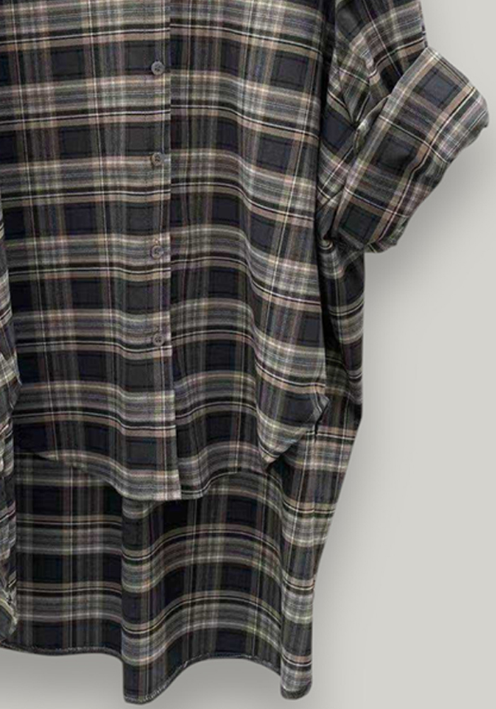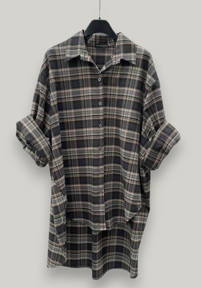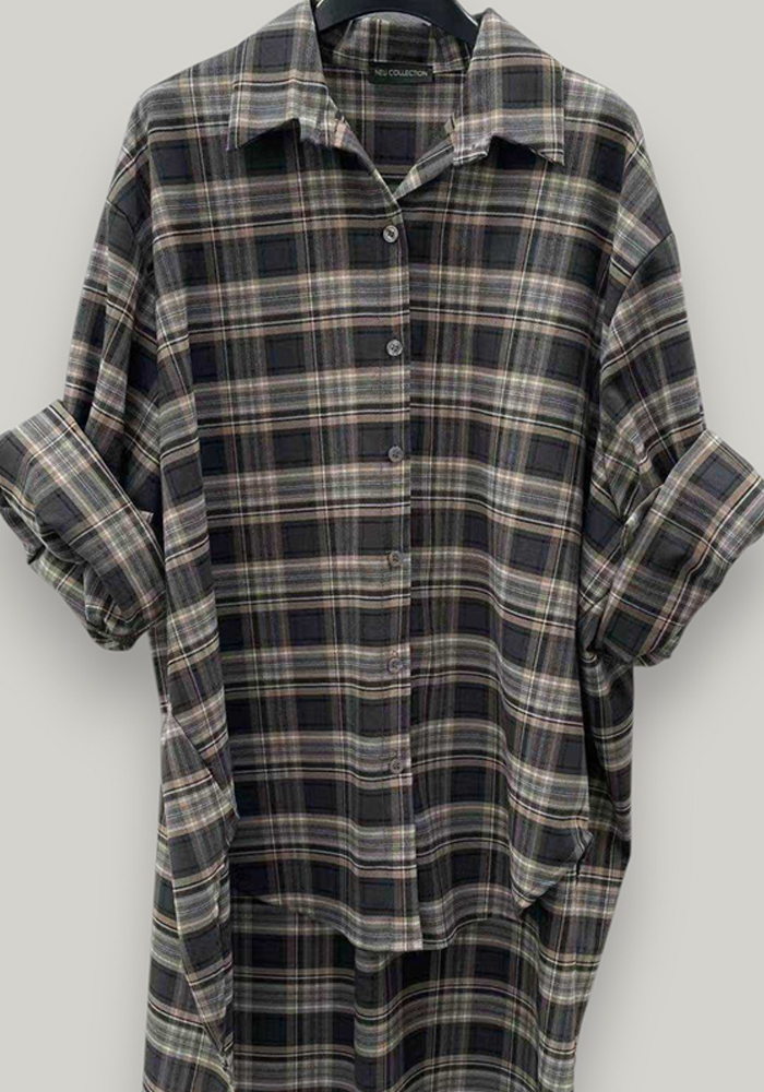 Γυναικείο πουκάμισο Palazzo σε καρό μοτίβο, ιδανικό για κομψές και άνετες εμφανίσεις. Κατασκευασμένο από απαλό ύφασμα, με χαλαρή γραμμή και μακρύτερο πίσω μέρος για επιπλέον κάλυψη. Διαθέτει γιακά, κουμπιά σε όλο το μήκος και μανίκια που μπορούν να φορεθούν κατεβασμένα ή γυρισμένα για πιο casual look.