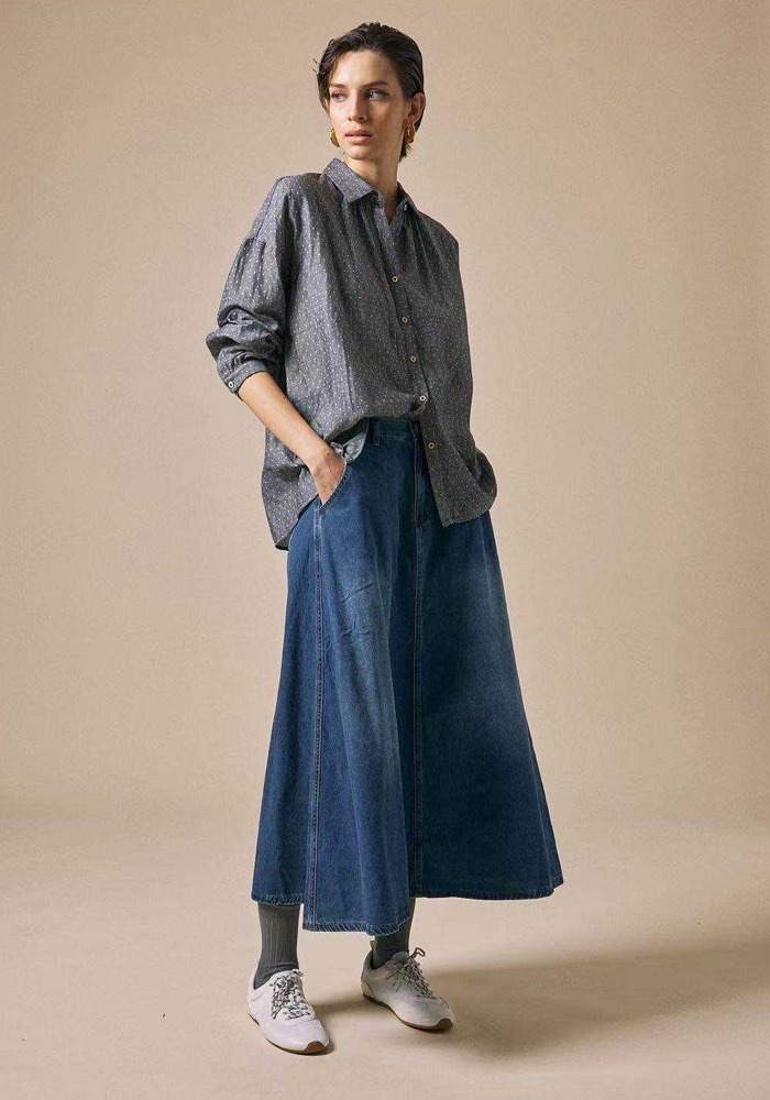 Η τζιν φούστα σε Α-γραμμή αποτελεί ένα διαχρονικό κομμάτι που συνδυάζει άνεση και κομψότητα. Κατασκευασμένη από ποιοτικό denim, διαθέτει ψηλή μέση, διακριτικές πλαϊνές τσέπες και κλασικό κλείσιμο με κουμπί και φερμουάρ. Η γραμμή της προσφέρει ελευθερία κινήσεων και κολακεύει κάθε σιλουέτα, ενώ μπορεί να φορεθεί από το πρωί μέχρι το βράδυ με sneakers ή μποτάκια. Ιδανική επιλογή για casual αλλά και πιο προσεγμένες εμφανίσεις.