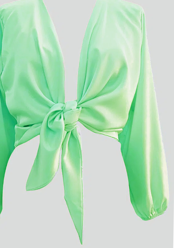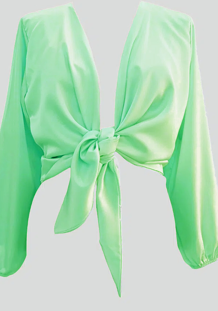 Chic μπολερό από medium shine ύφασμα, με μακριά μανίκια και λαστιχάκι στο τελείωμα. Είναι σχεδιασμένο με μύτες μπροστά και μπορεί να φορεθεί και δεμένο κόμπο. Τέλειο με φορέματα αλλά και με τοπ lingerie!