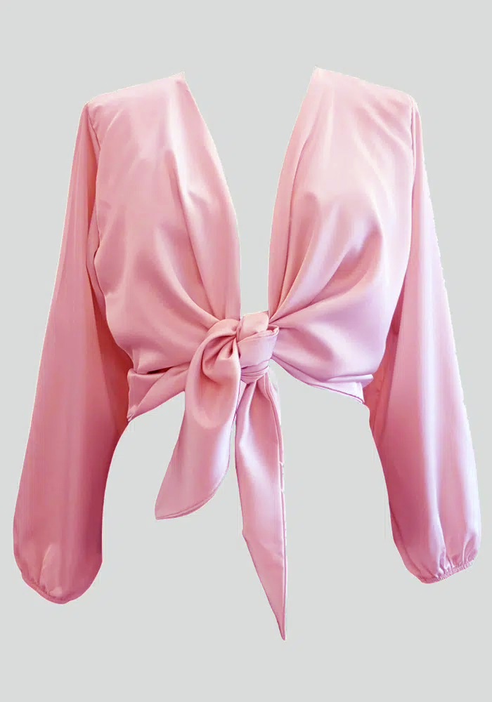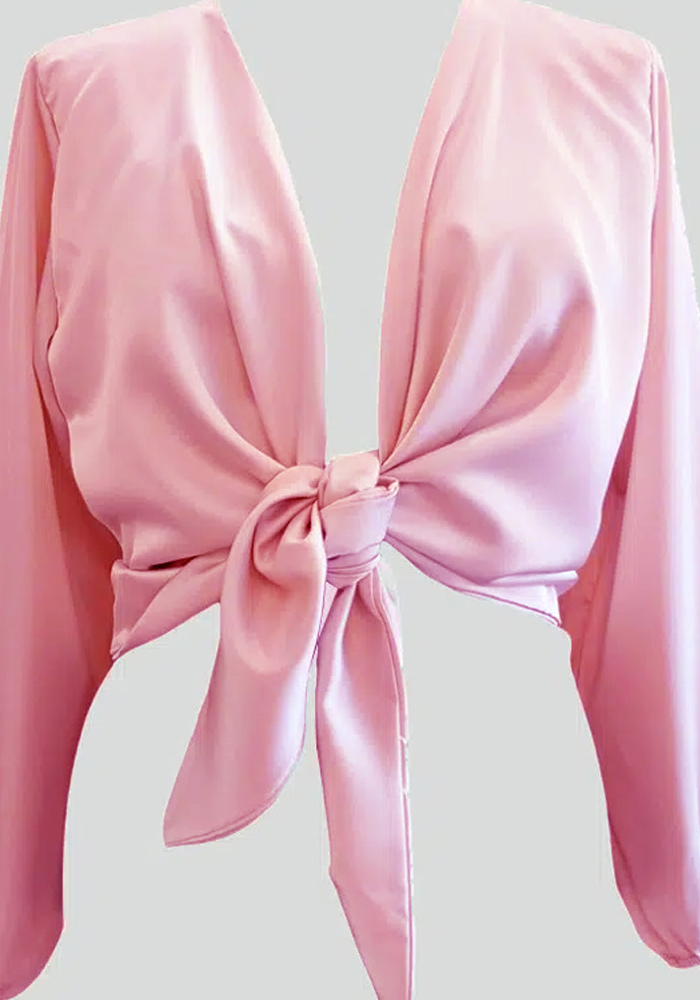 Chic μπολερό από medium shine ύφασμα, με μακριά μανίκια και λαστιχάκι στο τελείωμα. Είναι σχεδιασμένο με μύτες μπροστά και μπορεί να φορεθεί και δεμένο κόμπο. Τέλειο με φορέματα αλλά και με τοπ lingerie!