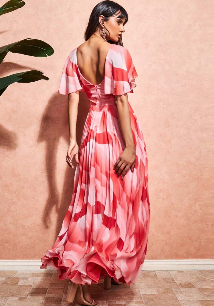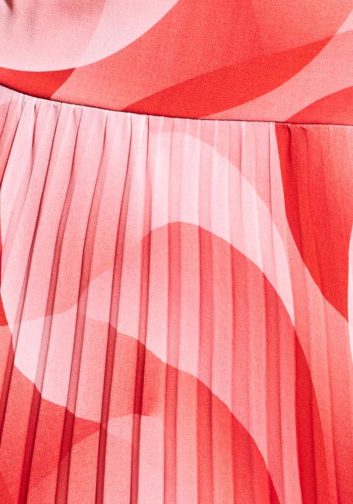 Επίσημο, πλισέ φόρεμα από αέρινο chiffon με geo print. Είναι σχεδιασμένο με σταθερό κορμό με κολακευτικό V εμπρός & στην πλάτη, πλήρως φοδραρισμένο. Το κάτω τμήμα είναι σε πλούσια κλος γραμμή. Eye catching piece για τις επίσημες εκδηλώσεις σας!