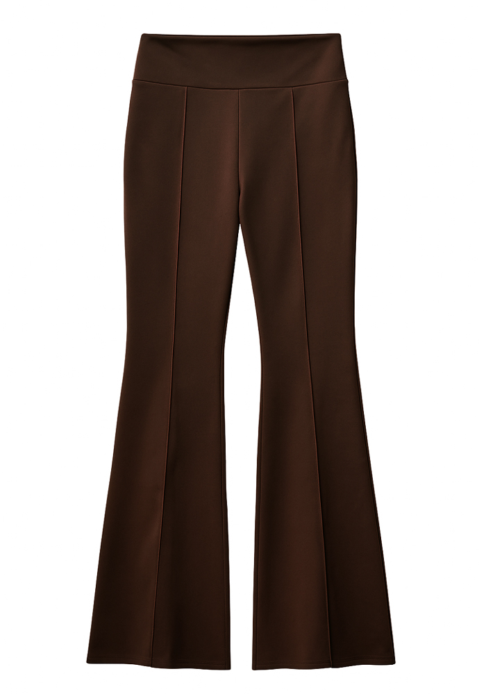 Το καφέ ψηλόμεσο καμπάνα παντελόνι είναι το απόλυτο must-have για κομψές και σύγχρονες εμφανίσεις. Η εφαρμογή του αγκαλιάζει τη μέση και τους γοφούς, ενώ το καμπάνα τελείωμα χαρίζει αίσθηση επιμήκυνσης στο πόδι. Συνδυάζεται ιδανικά με πουκάμισα, τοπ και σακάκια για business look αλλά και με πιο casual κομμάτια για smart chic outfit.