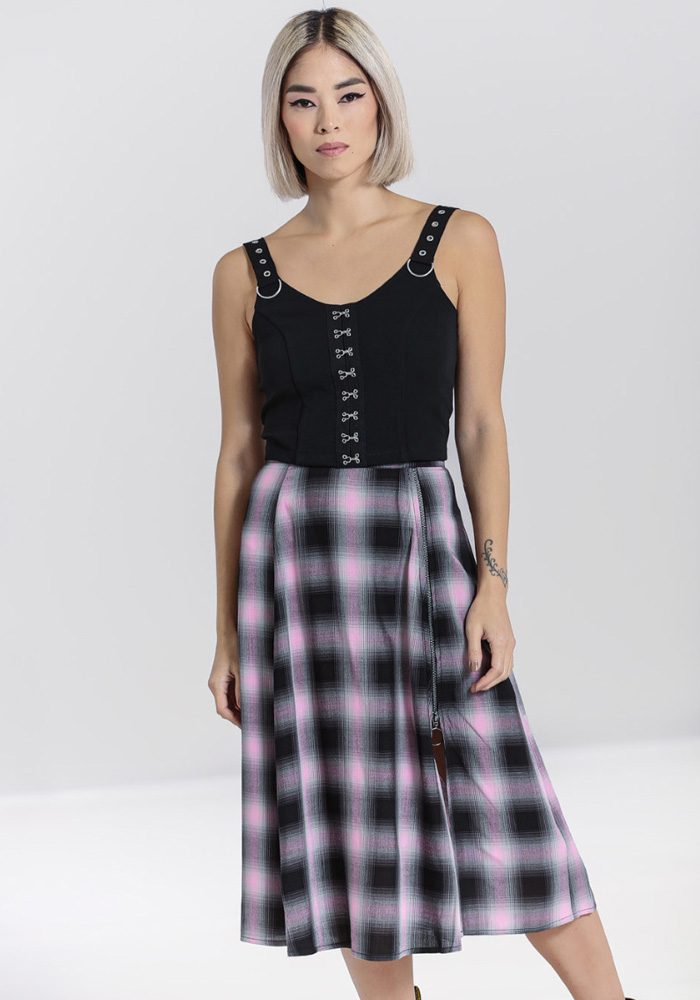 Grunge, ’90s inspired φούστα από μαλακό high quality viscose καρώ degraded ύφασμα. Είναι σχεδιασμένη σε άνετη φούστα flare, άλφα γραμμή με σταθερή μέση & σκίσιμο με gunmetal φερμουάρ! Alternative piece με κολακευτικό πατρόν!
