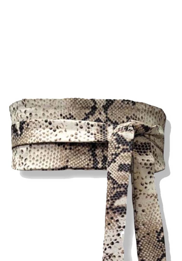 Snakeskin ζώνη σε στυλ japanese obi από μαλακό ύφασμα σε animal print. Είναι σχεδιασμένο με θηλιά/κουμπότρυπα για να γυρνά γύρω από τη μέση. Συνδυάστε τη ευρηματικά!