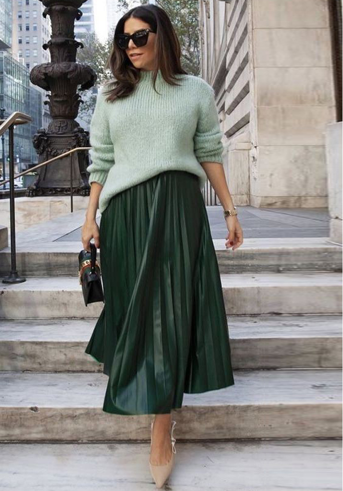 Fashionable πλισέ φούστα από ματ δερματίνη με μάκρος 3/4 & άνετο λάστιχο στη μέση. Συνδυάστε ευρηματικά!