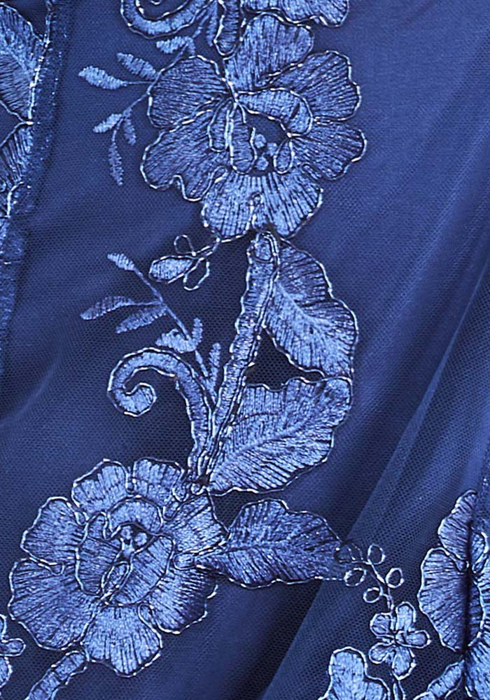 Επίσημο, chic φόρεμα από κεντημένο τούλι δαντέλα πάνω σε σατέν. Το επάνω τμήμα είναι σχεδιασμένο με spaghetti straps, V , fitted κορμό με ραφές & σατέν φάσα που τονίζει τη μέση. Το κάτω τμήμα έχει ελαφρά ασυμμετρία, κλος γραμμή & εντυπωσιακό embroidered στρίφωμα. Ιδανικό για special occasions που θέλετε να ξεχωρίσετε!