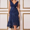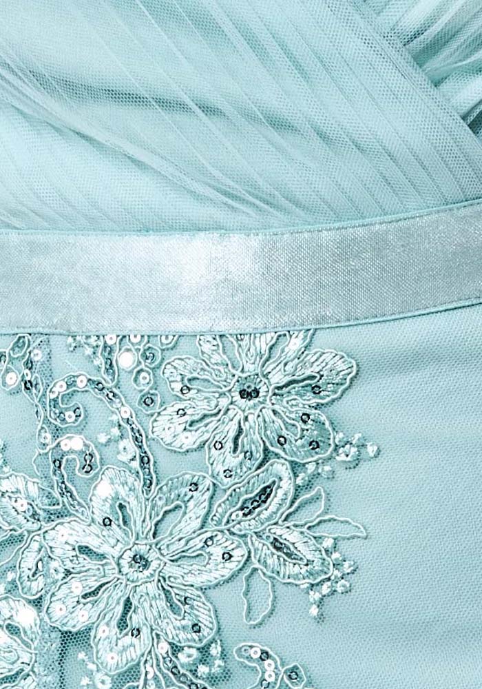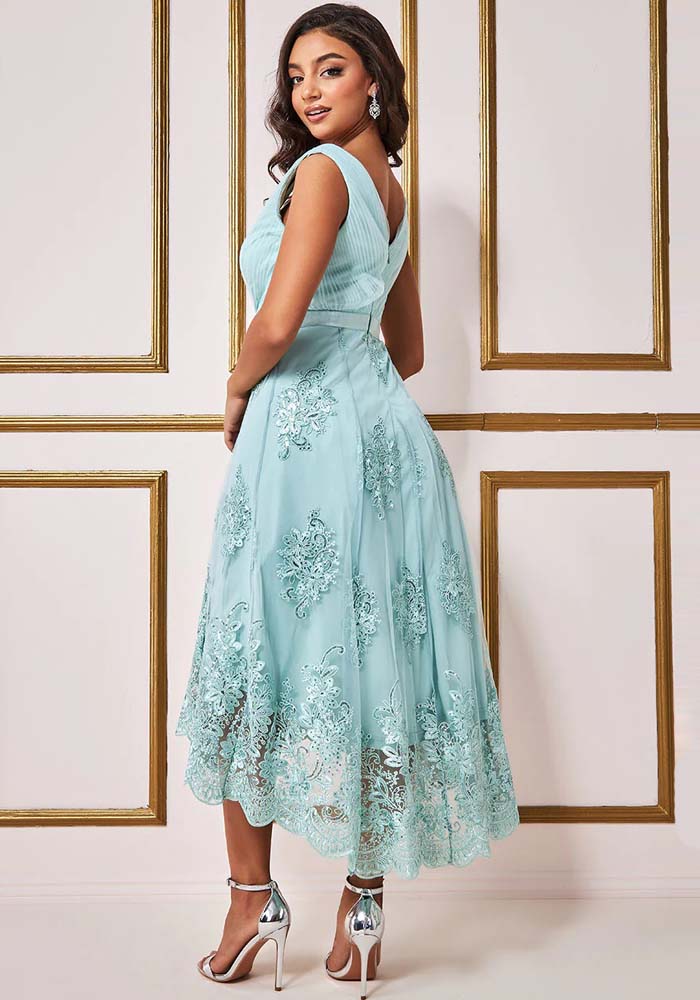 Επίσημο, chic φόρεμα από κεντημένο τούλι δαντέλα με detailed στρίφωμα. Το επάνω τμήμα είναι σε κρουαζέ με πιέτες, σατέν φάσα στη μέση , ενώ το κάτω τμήμα σε ελαφρά ασύμμετρη γραμμή κλος, πλήρως φοδραρισμένο με jersey. Ιδανικό φόρεμα για Γάμο & Βάπτιση!