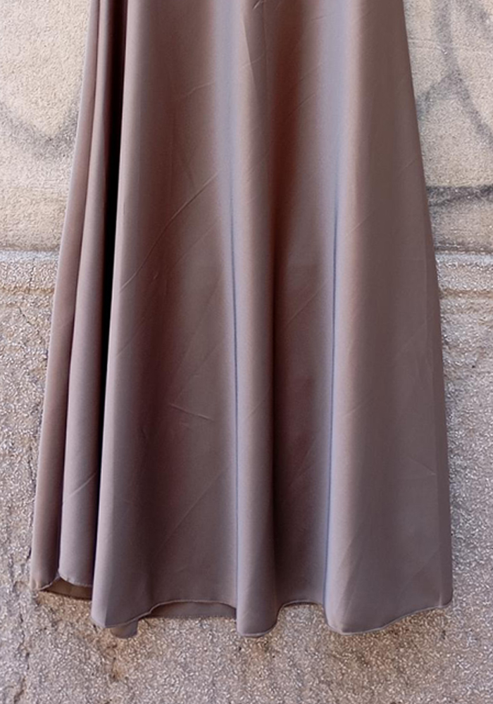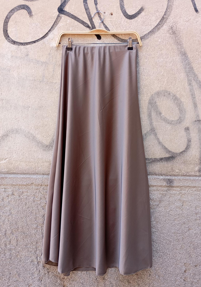 Ανανεώστε τη γκαρνταρόμπα σας με αυτή τη διαχρονική maxi σατέν φούστα σε mocha τόνο. Το σατέν ύφασμα προσφέρει απαλή αίσθηση και κομψή ροή, χαρίζοντας μία εκλεπτυσμένη εμφάνιση από το πρωί έως το βράδυ. Η γραμμή της αγκαλιάζει απαλά τη σιλουέτα χωρίς να διαγράφει, ενώ το λάστιχο στη μέση εξασφαλίζει άνεση και ευελιξία στο styling. Συνδυάστε την με ένα top και ζώνη για ένα ολοκληρωμένο, polished outfit.