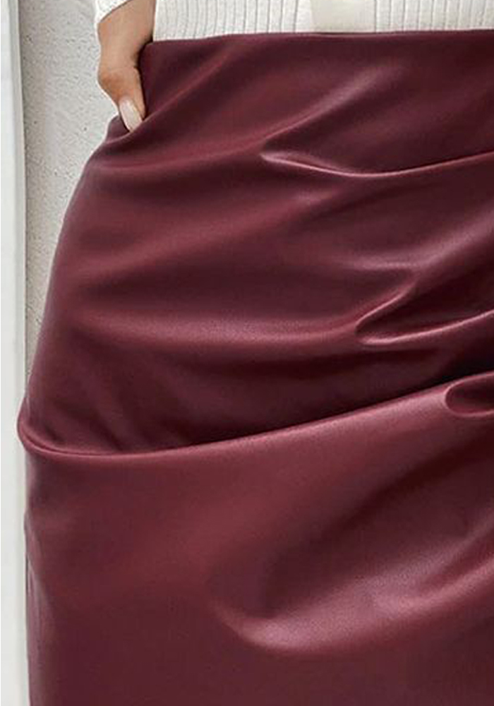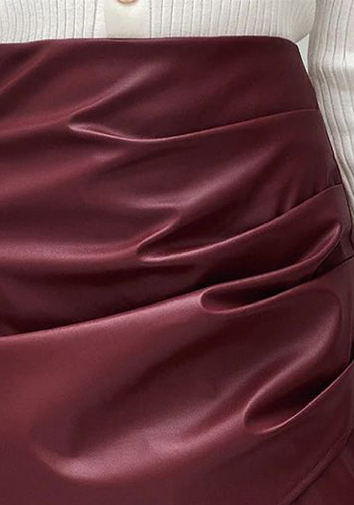 Sexy mini φούστα από faux δέρμα με ματ finish. Είναι σχεδιασμένη με υψηλόμεσο πατρόν & ντραπέ σχέδιο στο πλάι. Τέλειο με satin tops & πλεκτά!