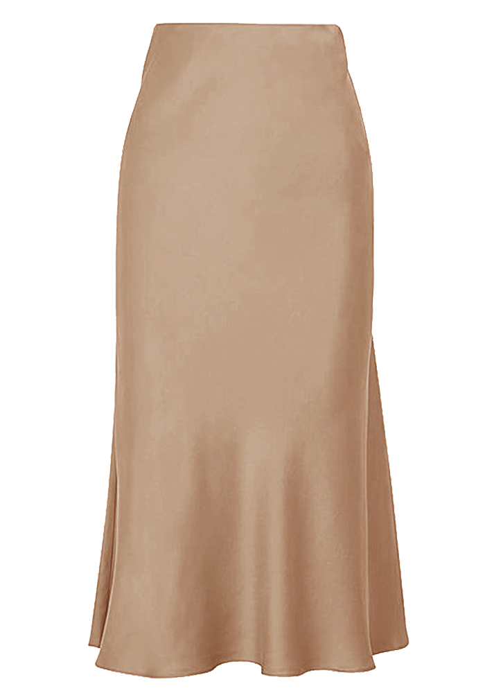 Must have σατέν φούστα από medium shine ύφασμα, σε πράσινο/λαδί απόχρωση. Έχει λάστιχο στη μέση & μάκρος 3/4, bias cut κάτω από το γόνατο, με raw τελείωμα. Συνδυάστε ευρηματικά!