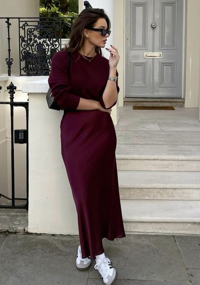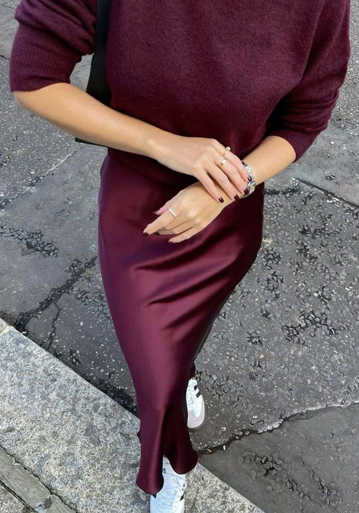 Must have σατέν φούστα από medium shine ύφασμα. Έχει λάστιχο στη μέση & μάκρος 3/4, bias cut κάτω από το γόνατο, με raw τελείωμα. Συνδυάστε ευρηματικά!