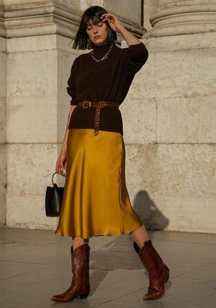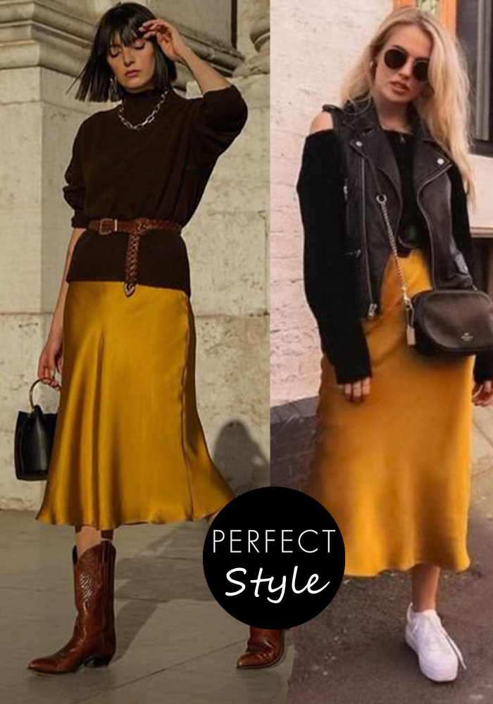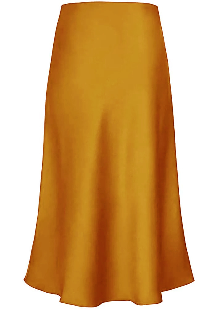 Must have σατέν φούστα από medium shine ύφασμα, σε μουσταρδί απόχρωση. Έχει λάστιχο στη μέση & μάκρος 3/4, bias cut κάτω από το γόνατο, με raw τελείωμα. Συνδυάστε ευρηματικά!