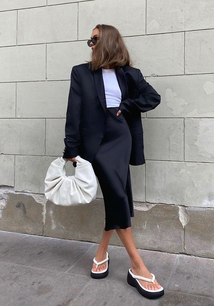 Must have σατέν φούστα από medium shine ύφασμα. Έχει λάστιχο στη μέση & μάκρος 3/4, bias cut κάτω από το γόνατο, με raw τελείωμα. Συνδυάστε ευρηματικά!