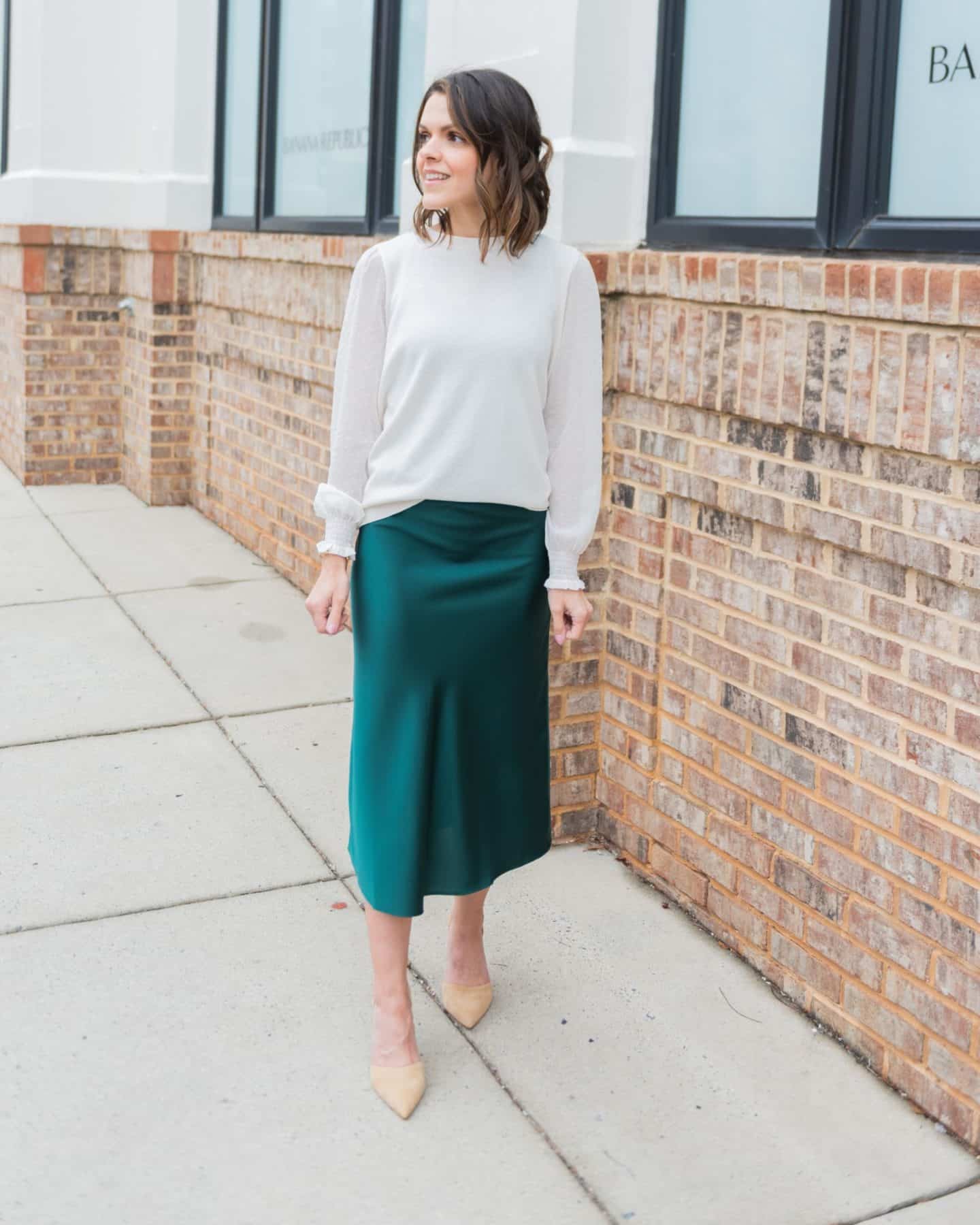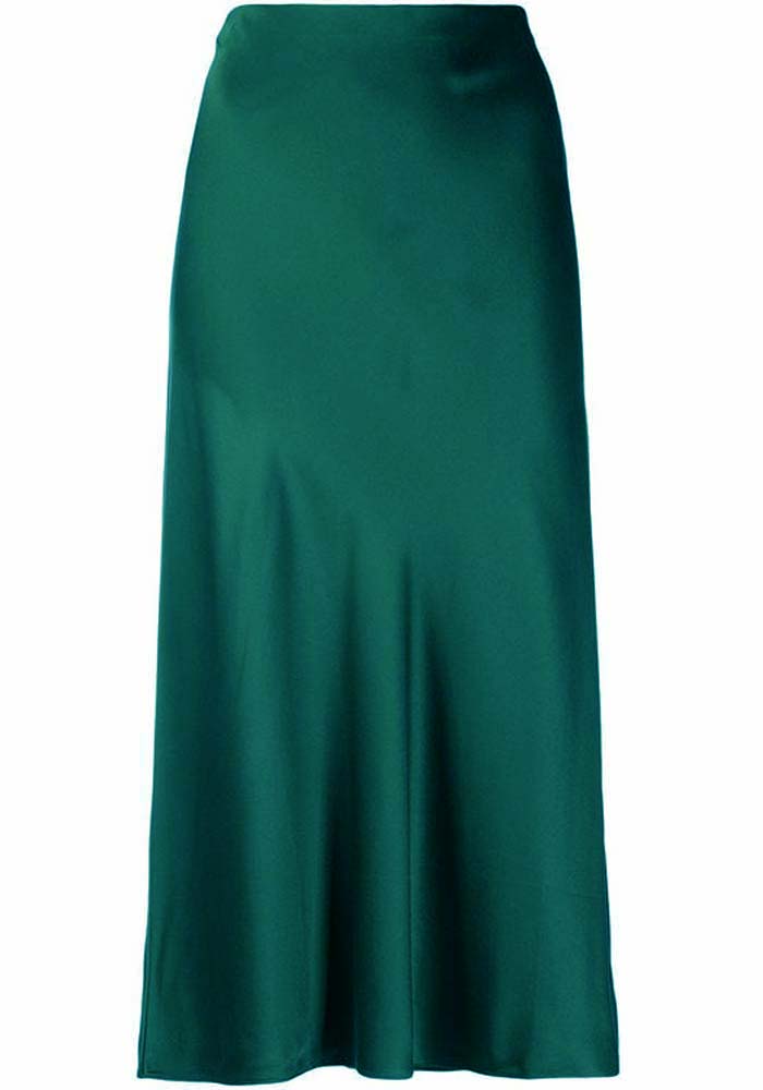 Must have σατέν φούστα από medium shine ύφασμα. Έχει λάστιχο στη μέση & μάκρος 3/4, bias cut κάτω από το γόνατο, με raw τελείωμα. Συνδυάστε ευρηματικά!