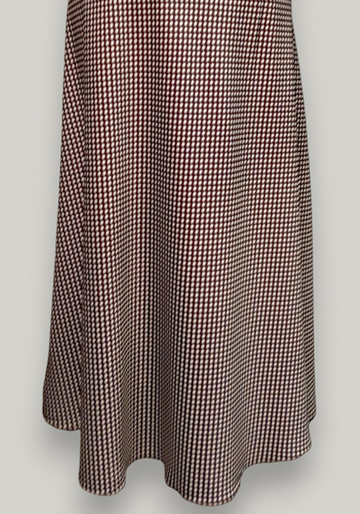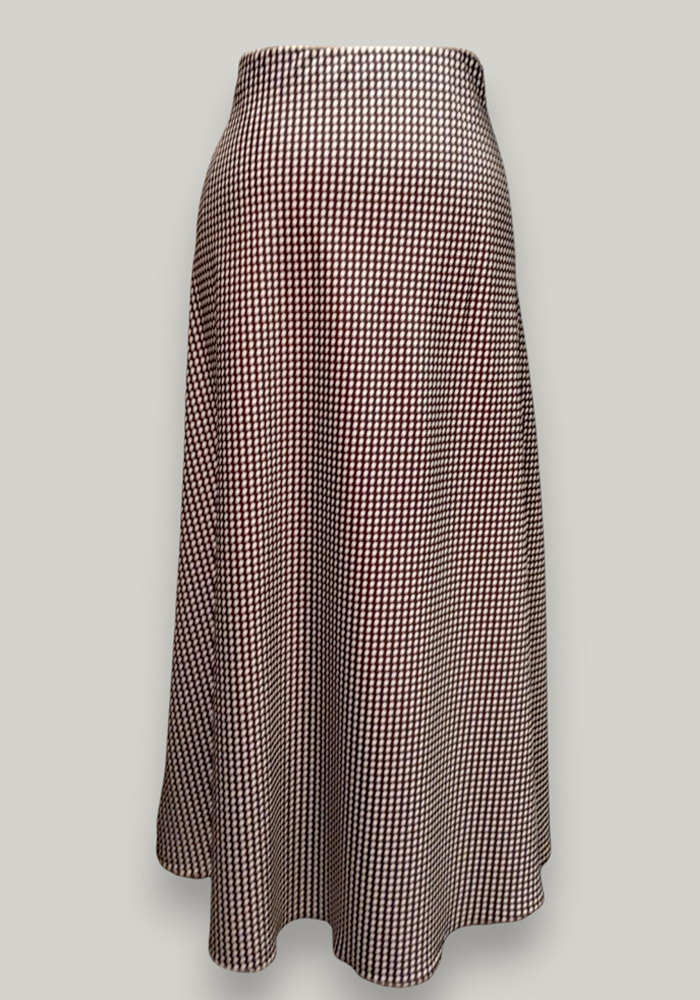 Η καφέ μακριά φούστα με πουά μοτίβο αποτελεί μία κομψή αλλά και ευέλικτη επιλογή για καθημερινές και επαγγελματικές εμφανίσεις. Η ελαφριά ρευστή γραμμή της αγκαλιάζει το σώμα και χαρίζει άνεση, ενώ το διαχρονικό πουά σχέδιο αποπνέει φρεσκάδα και θηλυκότητα. Ιδανική για office chic look με πουκάμισο ή πιο casual styling με t-shirt.