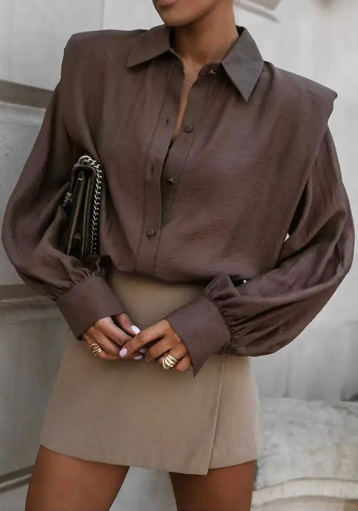 Η καφέ πουκαμίσα Collins αποτελεί ένα από τα πιο ευέλικτα και κομψά κομμάτια της γυναικείας γκαρνταρόμπας. Με minimal γραμμή και μοντέρνο oversized κόψιμο, συνδυάζει επαγγελματικό ύφος με σύγχρονο στιλ. Κατασκευασμένη από μαλακό ύφασμα που αγκαλιάζει το σώμα και βάτες με ιδιαίτερο κόψιμο στους ώμους, προσφέρει άνεση ενώ παραμένει ιδανική επιλογή για office looks ή βραδινές εμφανίσεις. Ταιριάζει εξαιρετικά με jeans, παντελόνια cigarette ή φούστες και αναβαθμίζεται με ζώνη για πιο structured σιλουέτα.