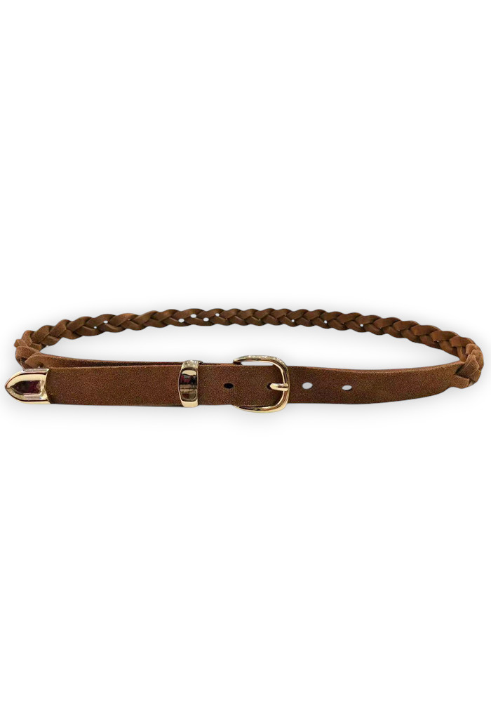 Πλεκτή ζώνη από γνήσιο δέρμα suede με μεταλλική αγκράφα. Η φυσική υφή suede και η χειροποίητη πλέξη προσδίδουν διαχρονικότητα και πολυτέλεια, ενώ οι μεταλλικές λεπτομέρειες ολοκληρώνουν το elegant στυλ.