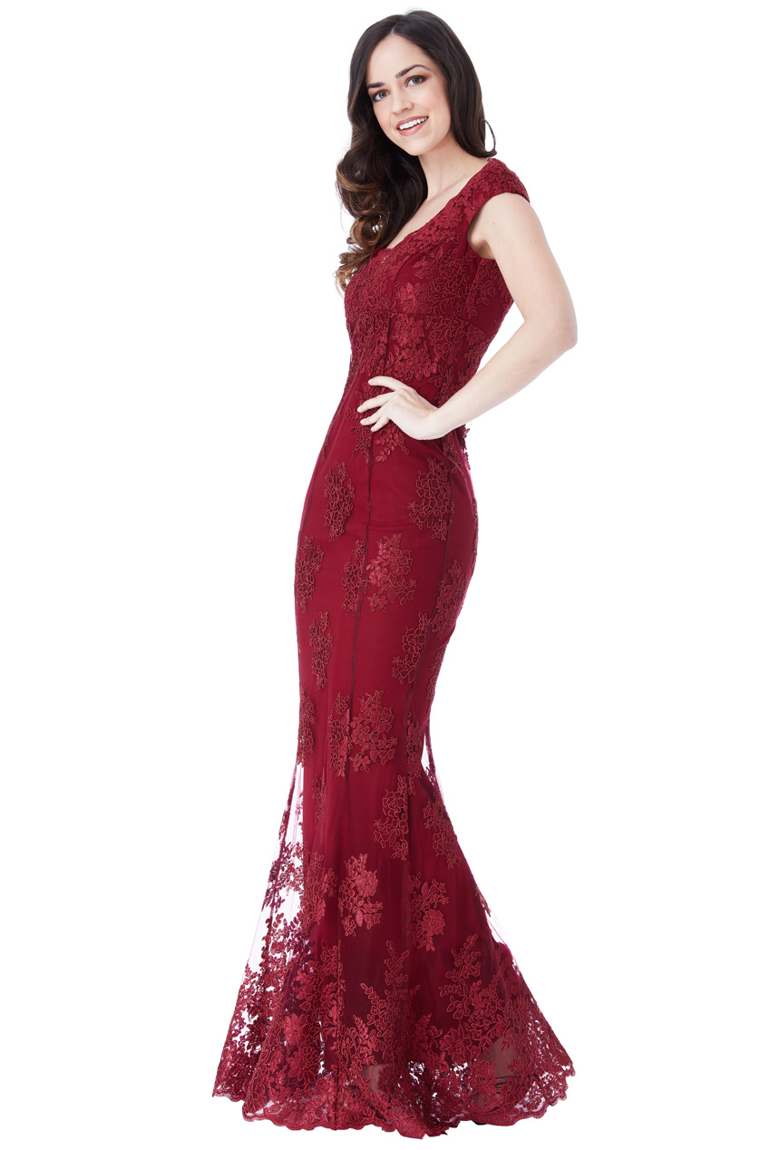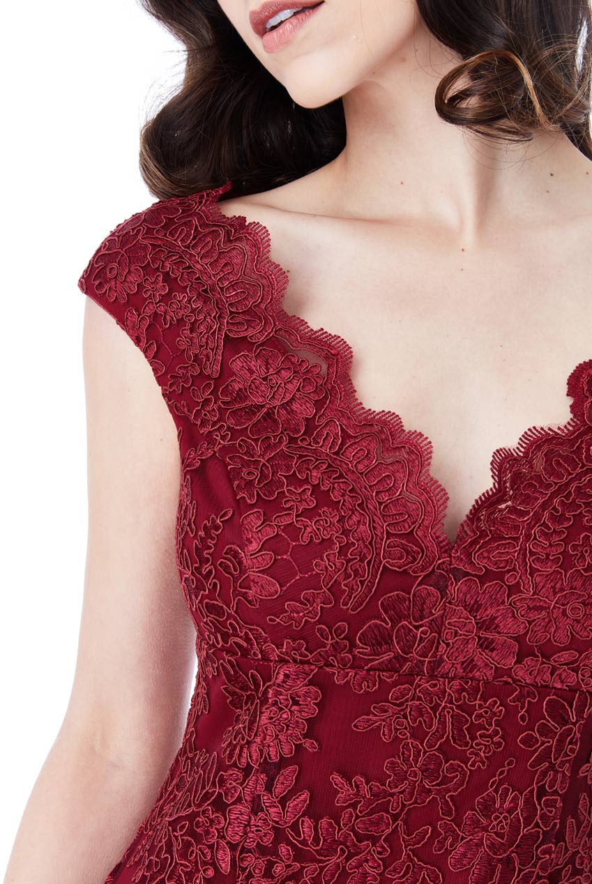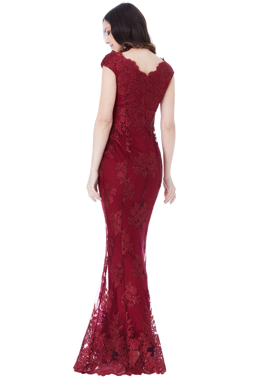 Romantic, luxurious επίσημο maxi φόρεμα από μπορντώ τούλι σε μπορντώ φόντο απλικαρισμένο με fine venetian δαντέλα. Eίναι σχεδιασμένο σε fitted, εφαμοστή γραμμή “γοργόνας” που κολακεύει & off shoulder ντεκολτέ. Eντυπωσιακό με μοναδικό στυλ!