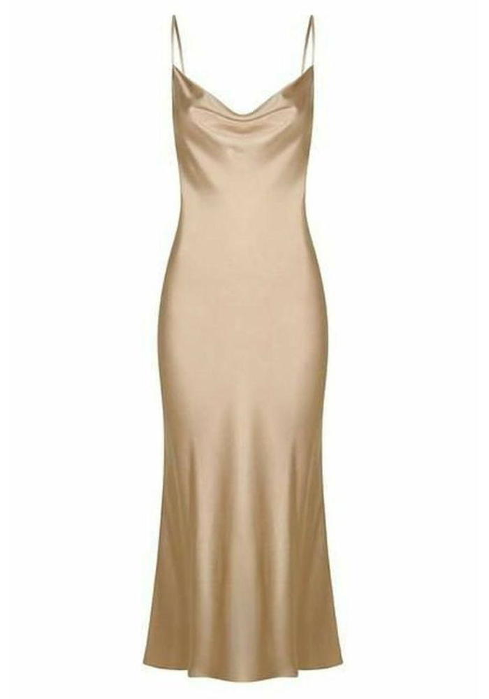 Φόρεμα από σατέν ύφασμα medium shine. Είναι σχεδιασμένο με ελαστικό τιραντάκι spaghetti, ντραπέ σχέδιο εμπρός και σκίσιμο στο πλάι. Συνδυάστε το ευρηματικά!