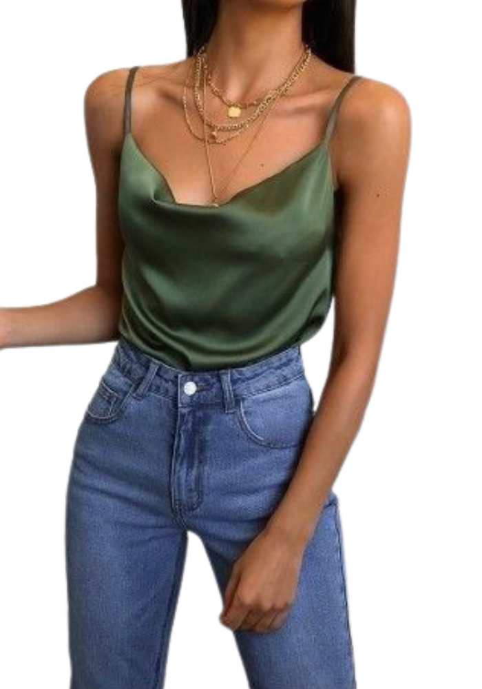 Passepartout top από σατέν ύφασμα medium shine. Είναι σχεδιασμένο με ελαστικό τιραντάκι spaghetti και ντραπέ σχέδιο εμπρός. Συνδυάστε το ευρηματικά!