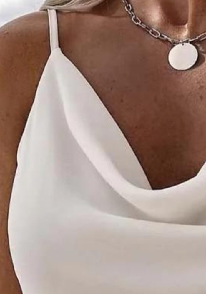 Passepartout top από σατέν ύφασμα medium shine. Είναι σχεδιασμένο με ελαστικό τιραντάκι spaghetti, ντραπέ σχέδιο εμπρός. Συνδυάστε το ευρηματικά!
