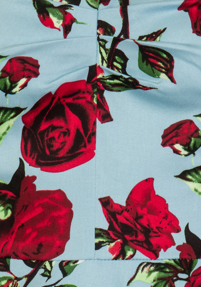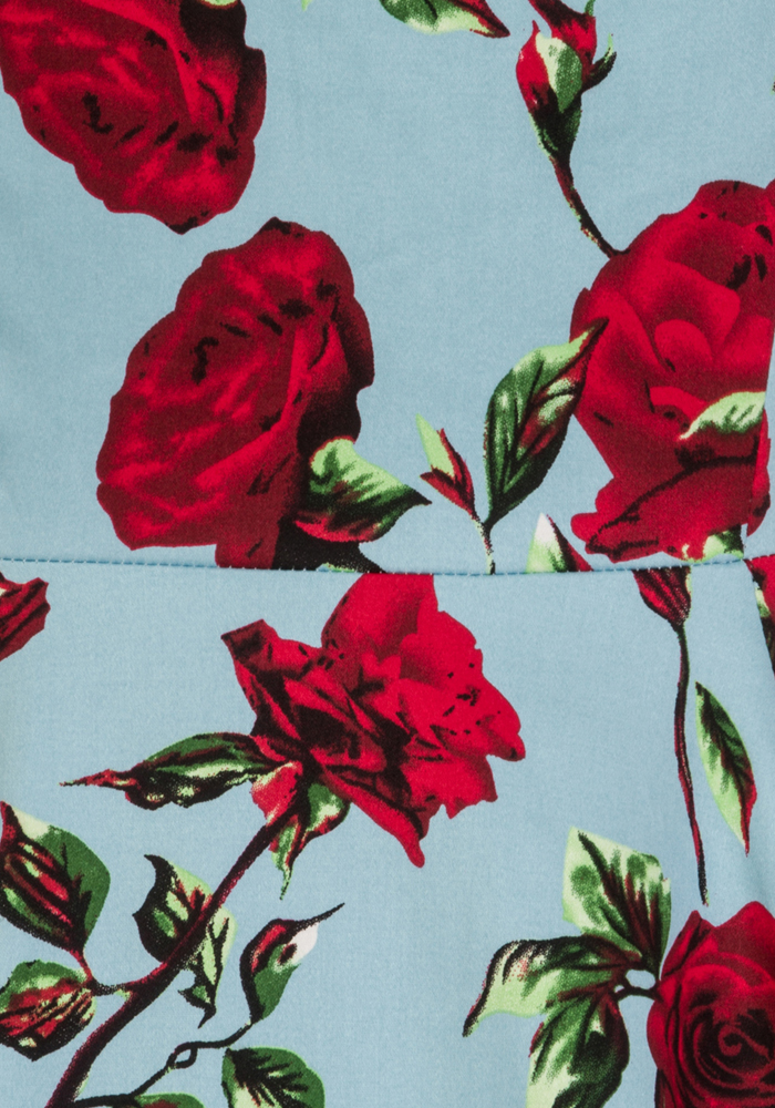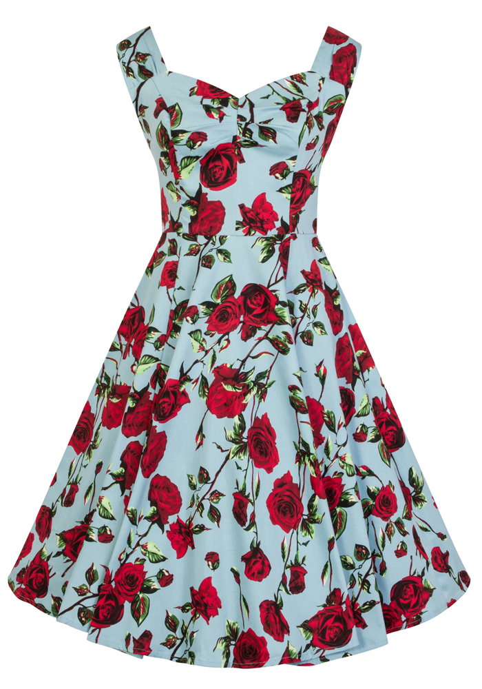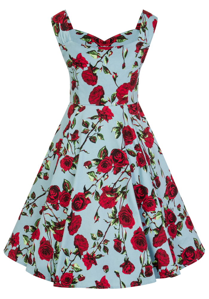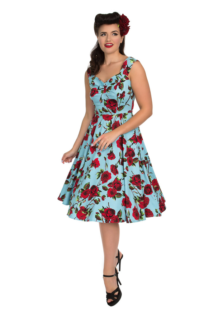 Vintage, ’50s styled pin up φόρεμα από high quality cotton καπαρντίνα με ελαστικότητα, σε floral print. Είναι σχεδιασμένο με κολακευτική sweetheart λαιμόκοψη με σούρες, φαρδιές τιράντες, ραφές που υπογραμμίζουν τον κορμό & τονισμένη μέση. Το κάτω τμήμα είναι σε πλούσια, κλος γραμμή, κάτω απ’ το γόνατο. Romantic & retro style!