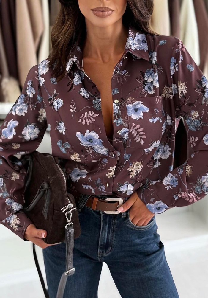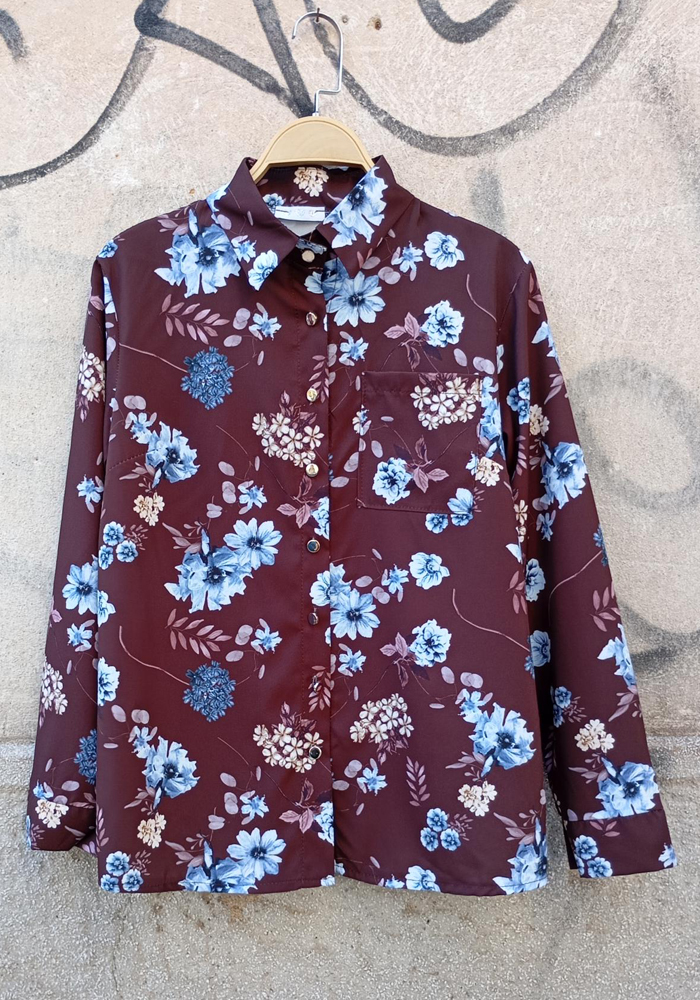Ανανεώστε την γκαρνταρόμπα σας με αυτό το κομψό, vintage floral πουκάμισο Carol σε καφέ απόχρωση με μπλε λουλούδια. Κατασκευασμένο από ελαφρύ ύφασμα, συνδυάζει άνεση και διαχρονικό στυλ. Ιδανικό για office looks αλλά και πιο χαλαρές εμφανίσεις, μπορεί να φορεθεί μέσα από παντελόνι ή τζιν για μοντέρνο αποτέλεσμα.