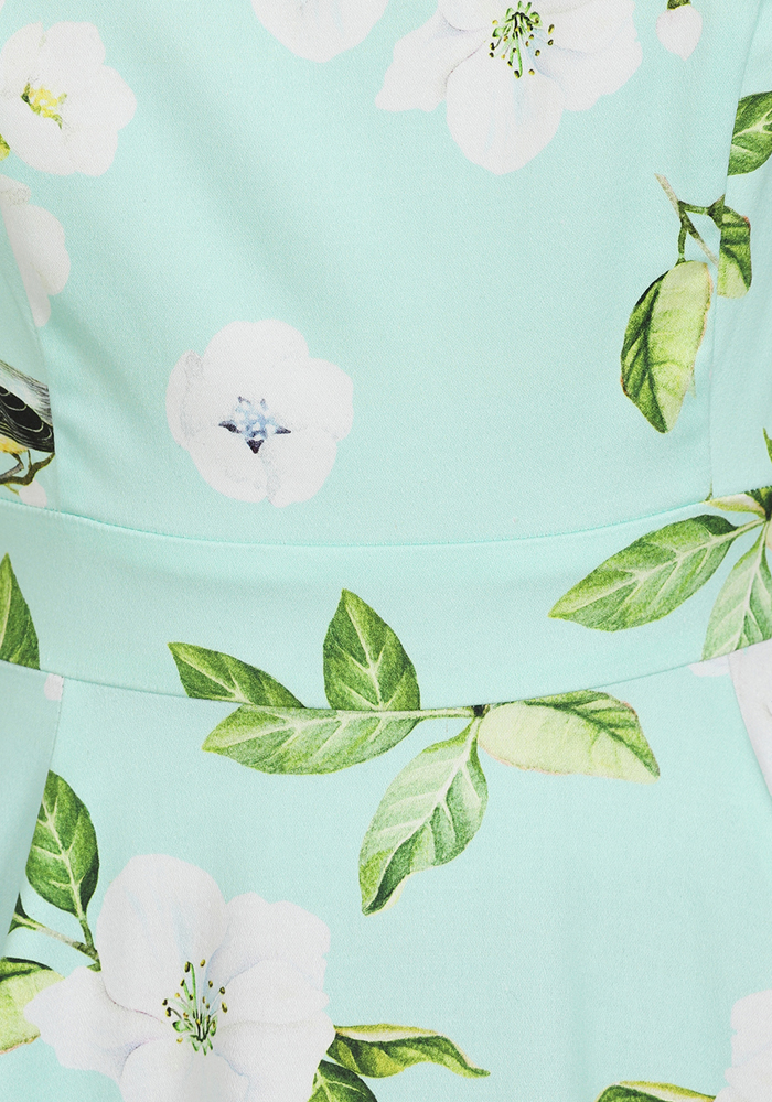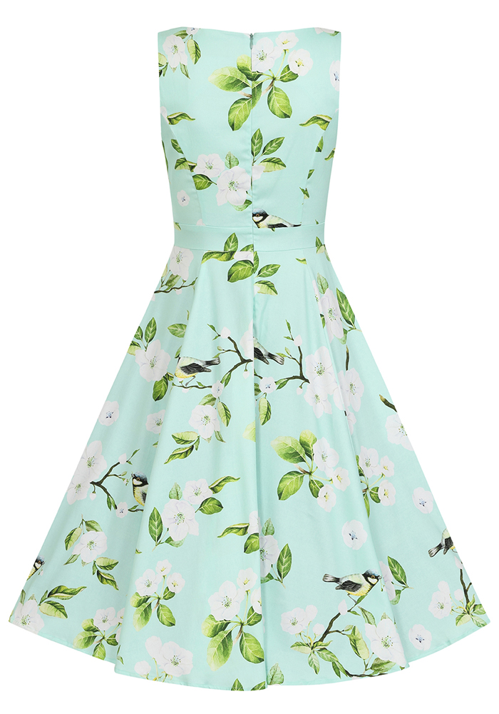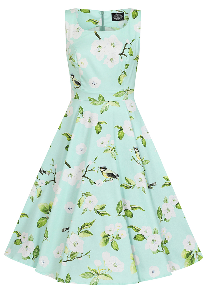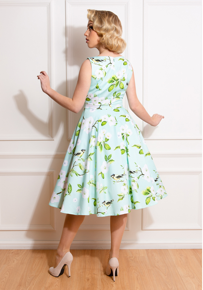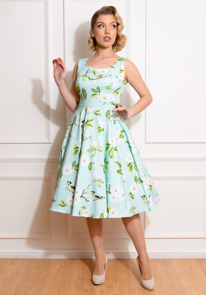Vintage, classic φόρεμα από cotton καπαρντίνα με ελαστικότητα σε fresh, floral print. Είναι σχεδιασμένο με κολακευτική λαιμόκοψη scoop, εφαρμοστό κορμό & ραφές ρεντιγκότας, τσέπες, με το κάτω τμήμα να καταλήγει σε πλούσια κλος γραμμή κάτω από το γόνατο. Romantic & retro style!