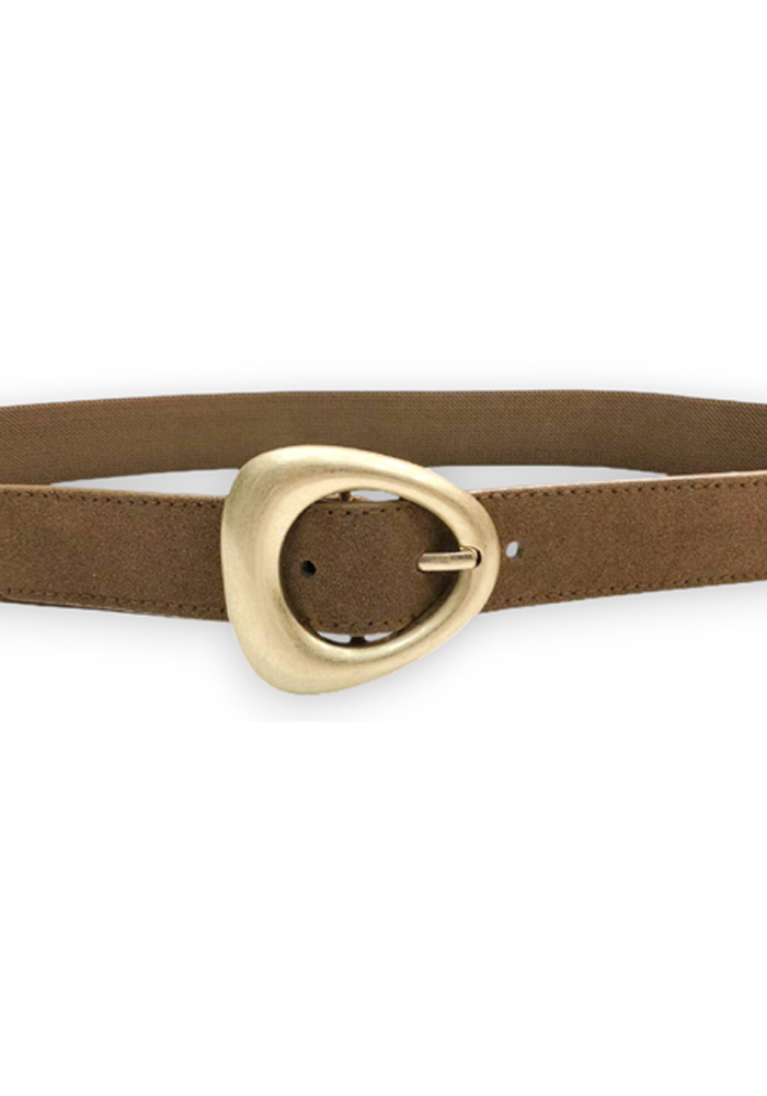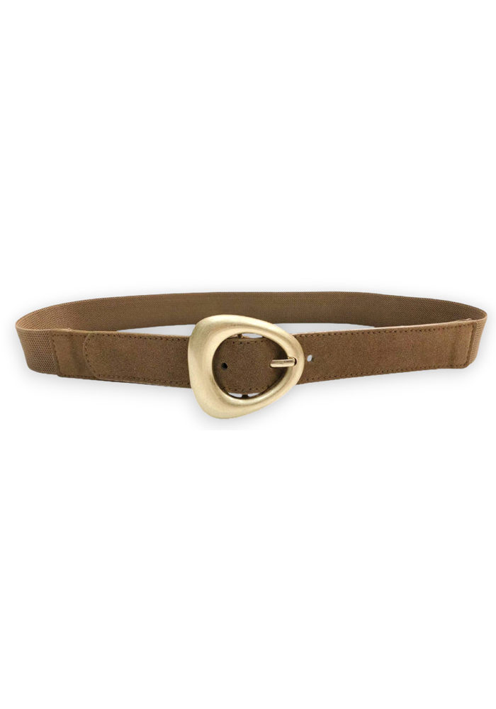 Minimal chic ελαστική ζώνη από πούρο suede με εντυπωσιακή μεταλλική αγκράφα σε χρυσό τόνο. Ένα αξεσουάρ που αναδεικνύει κάθε εμφάνιση, ιδανικό για να τονίσει τη μέση πάνω από φορέματα, σακάκια ή παντελόνια. Η ιδιαίτερη αγκράφα προσθέτει διακριτική λάμψη, ενώ η μαλακή υφή suede αποπνέει πολυτέλεια και κομψότητα.
