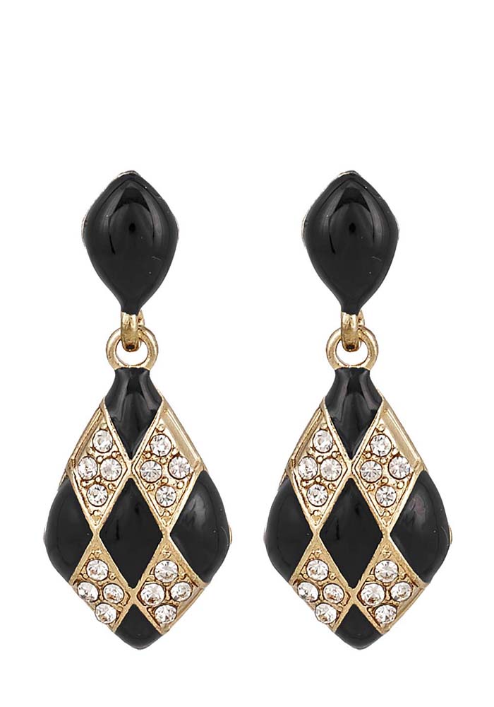 Vintage styled καρφωτά σκουλαρίκια σε σχήμα "δάκρυ" με strass Υλικό : Μέταλλο / Strass Χρώμα: Μαύρο / Λευκό Μήκος: 3,5εκ.