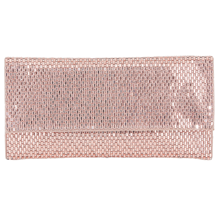 Τσάντα φάκελος από δερματίνη διακοσμημένη με κρύσταλλα Υλικό: Faux δέρμα / Κρύσταλλα Χρώμα: Rose gold Διαστάσεις: 24 x 12εκ.