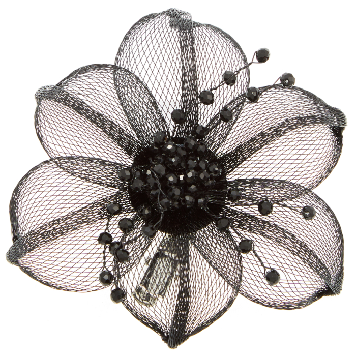 Καρφίτσα χειροποίητη με πέτρες και μεταλλικό πλέγμα σε σχέδιο λουλούδι Διαστάσεις: Μήκος 8cm Χρώμα: Μαύρο