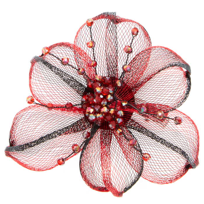 Καρφίτσα χειροποίητη με πέτρες και μεταλλικό πλέγμα σε σχέδιο λουλούδι Διαστάσεις: Μήκος 8cm Χρώμα: Kόκκινο