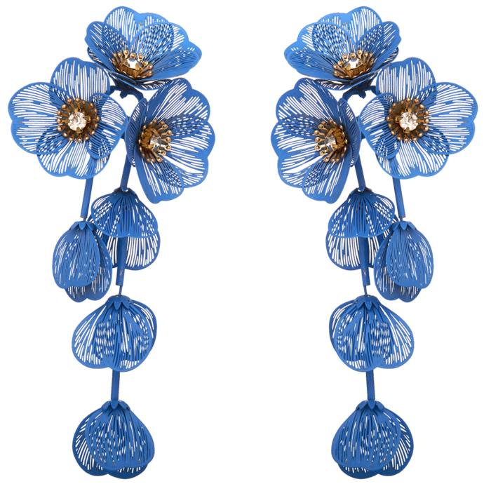 Σκουλαρίκια κρεμαστά, μακριά απο μέταλλο και στρας σε σχέδιο λουλούδι Διαστάσεις: Mήκος 12cm Χρώμα: Mπλε