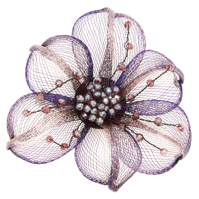 Καρφίτσα χειροποίητη με πέτρες και μεταλλικό πλέγμα σε σχέδιο λουλούδι Διαστάσεις: Μήκος 8cm Χρώμα: Μωβ