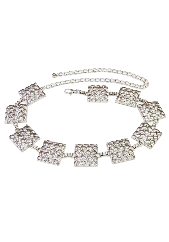 Η γυναικεία ζώνη αλυσίδα Croissant σε χρυσό χρώμα με ανάγλυφα γεωμετρικά στοιχεία σε σπειροειδές σχέδιο είναι το απόλυτο fashion accessory για κάθε εμφάνιση. Κομψή και εντυπωσιακή, φοριέται πάνω από φορέματα, πουκάμισα ή παντελόνια, προσδίδοντας πολυτέλεια και δυναμισμό στο στυλ σας. Ο ρυθμιζόμενος κρίκος εξασφαλίζει άνετη...