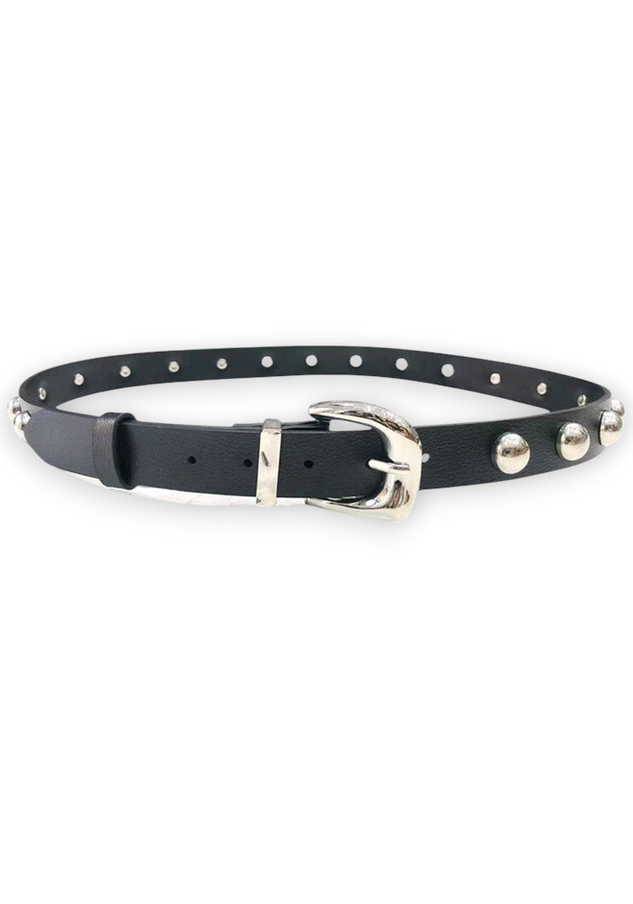 Ζώνη από γνήσιο δέρμα με τρουκς και αγκράφα Υλικό: Γνήσιο δέρμα / Μέταλλο Χρώμα: Μαύρο / Ασημί