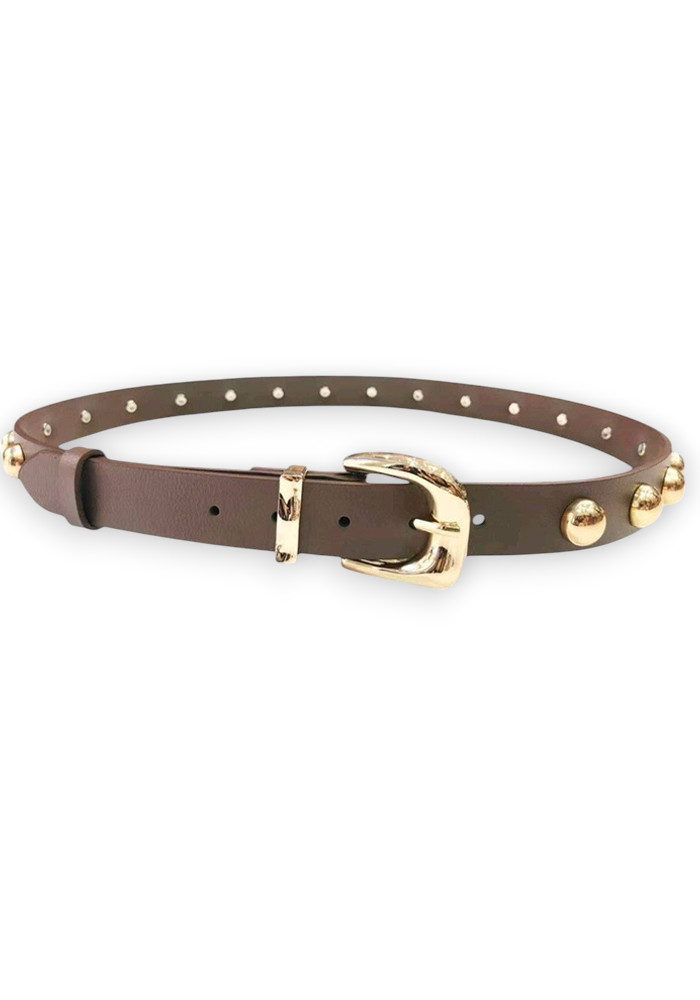 Ζώνη από γνήσιο δέρμα με τρουκς και αγκράφα Υλικό: Γνήσιο δέρμα / Μέταλλο Χρώμα: Καφέ / Χρυσό