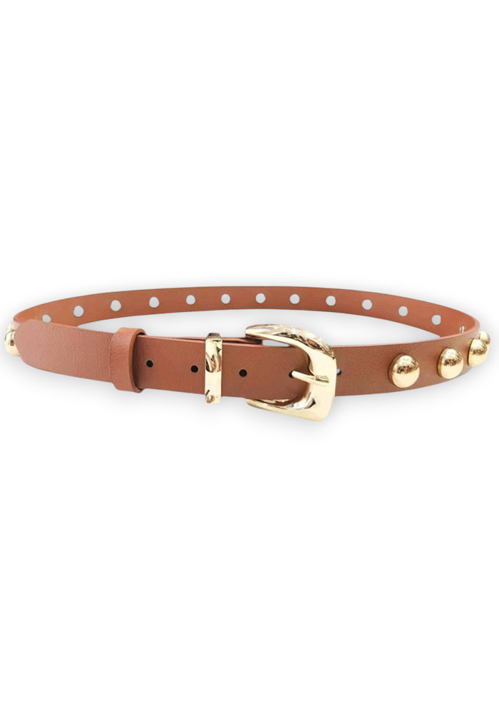 Ζώνη από γνήσιο δέρμα με τρουκς και αγκράφα Υλικό: Γνήσιο δέρμα / Μέταλλο Χρώμα: Ταμπά / Χρυσό