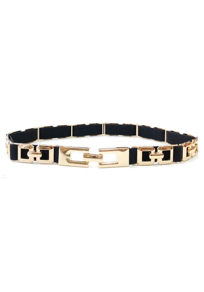 Chic ζώνη/λάστιχο με χρυσά μεταλλικά στοιχεία Υλικό: Μέταλλο / Λάστιχο Χρώμα: Μαύρο/Χρυσό Διαστάσεις: 70 x 2εκ.