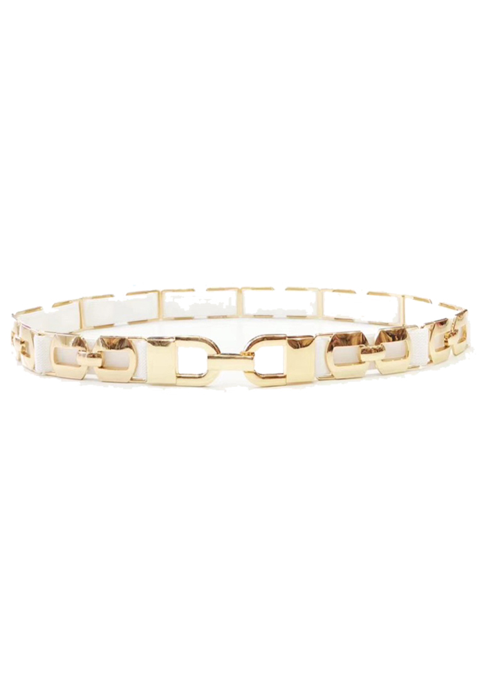 Chic ζώνη/λάστιχο με χρυσά μεταλλικά στοιχεία Υλικό: Μέταλλο / Λάστιχο Χρώμα: Λευκό/Χρυσό Διαστάσεις: 70 x 2εκ.